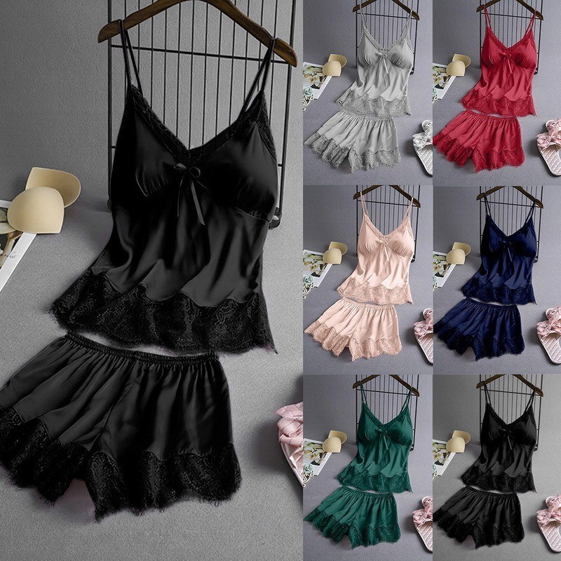 Type d'article: | Pyjamas | Nom de produit: | Ensemble de pyjama de satin de dentelle |