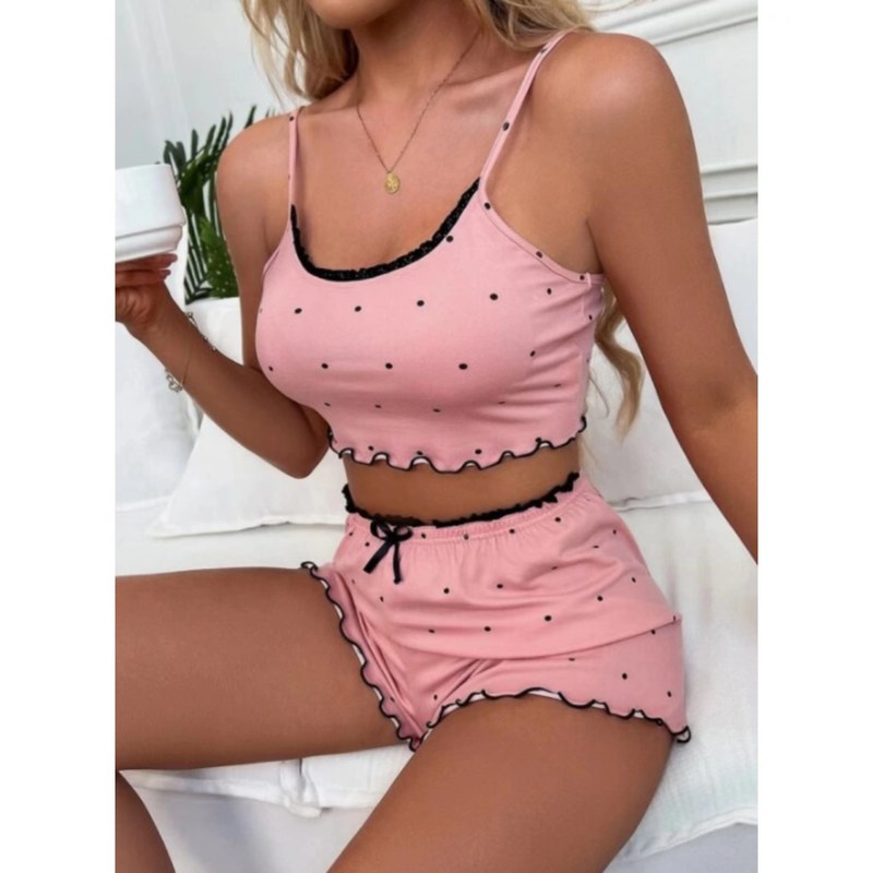 Mettre en évidence: | 2pcs Soft Comfortable Sleepwear,V Neck Floral Edge Sexy Pajamas,Satin Sleeveless Sexy Pajamas |