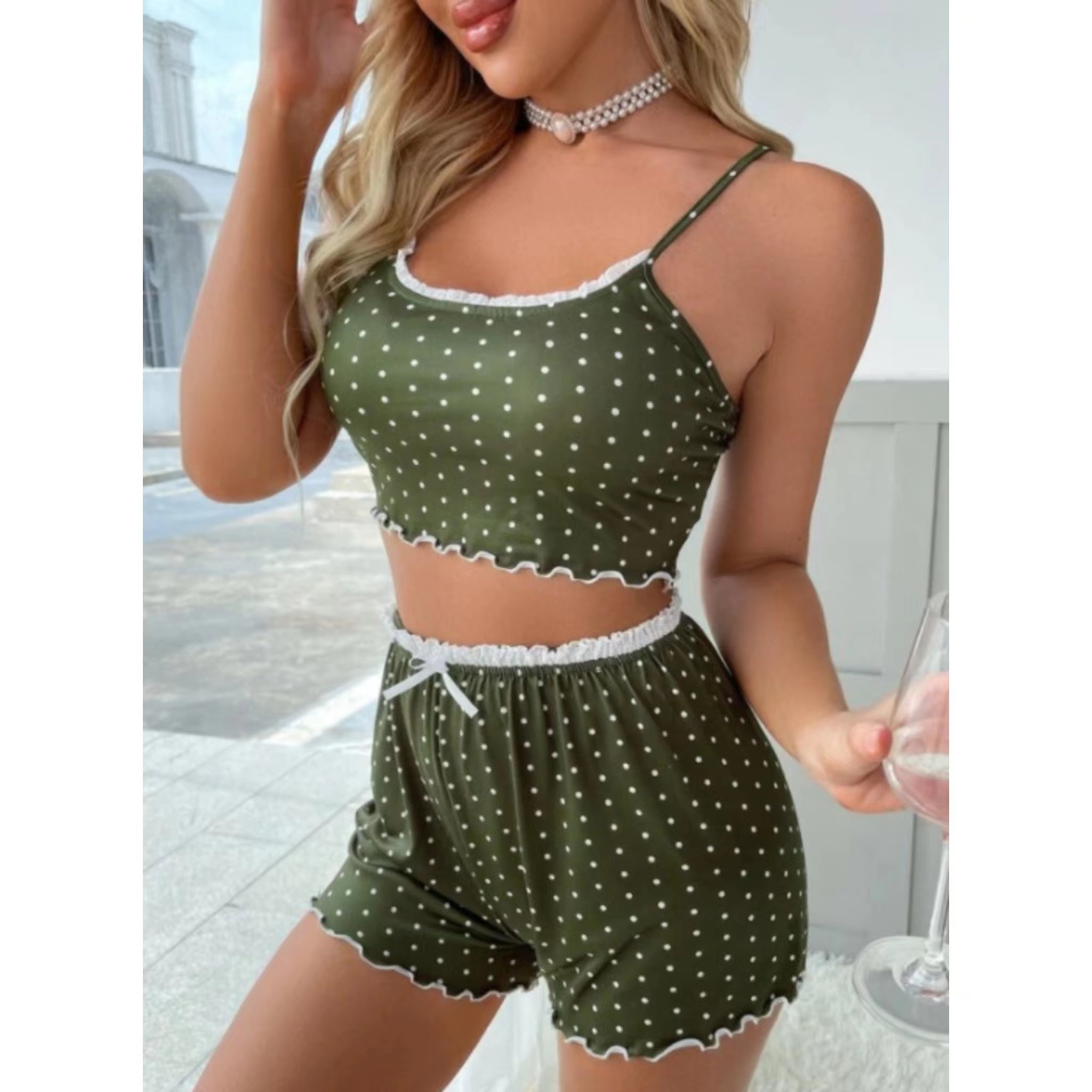 Hot Sales 2pcs Soft Comfortable Sleepwear V-neck lace Floral Edge Sexy Pajamas For Women Lingerie